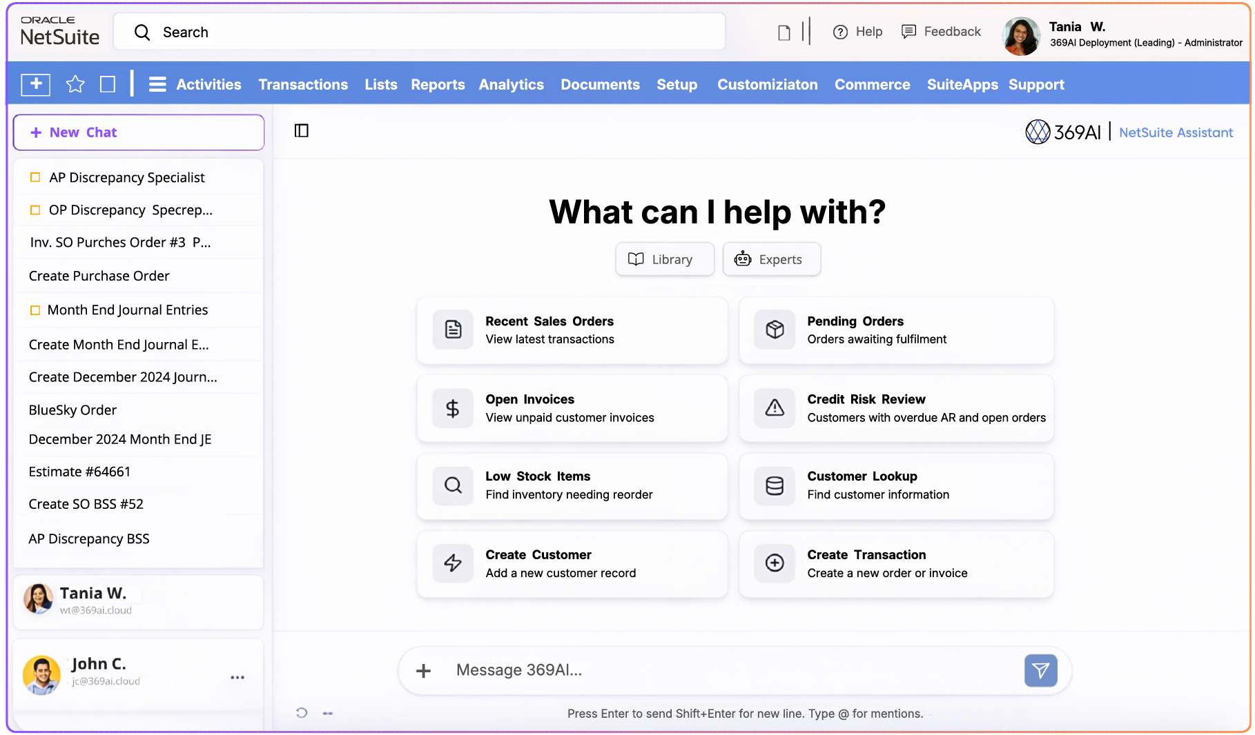 Get instant answers and intelligent insights grounded in live Netsuite data.